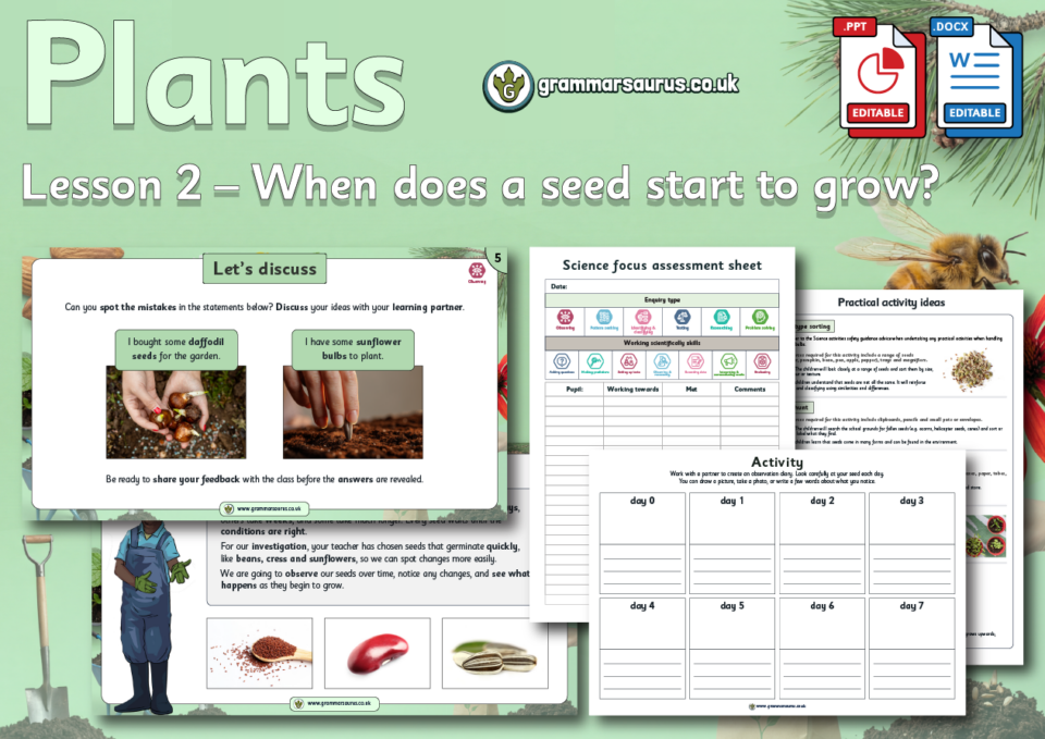 This editable differentiated lesson pack focuses on seeds. Lesson 2 introduces children to germination and helps them understand that seeds are alive