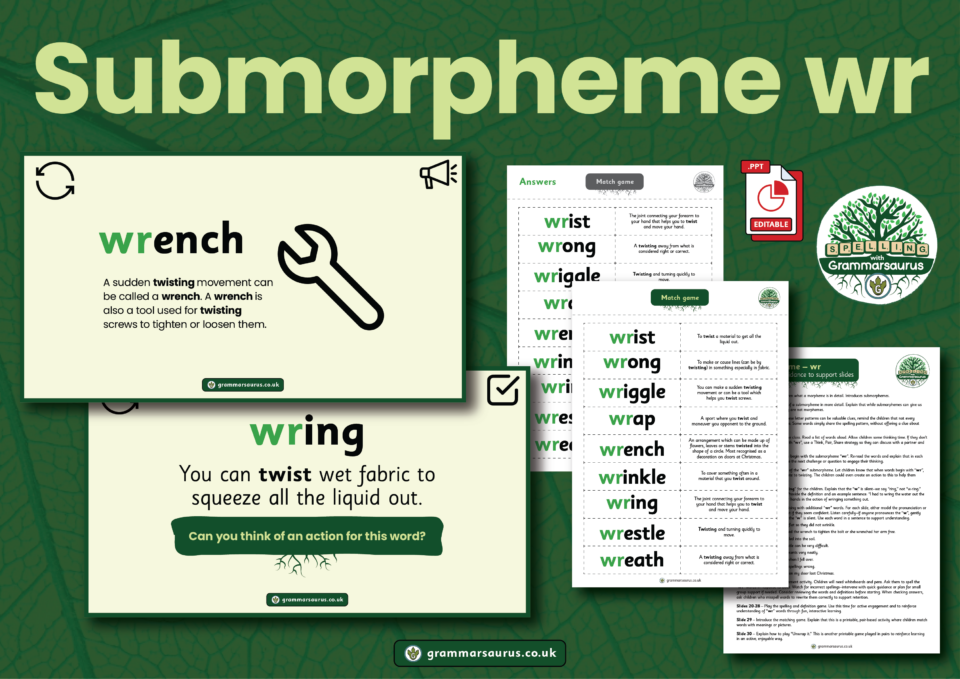 In this lesson, children will expand their knowledge of morphology by exploring the submorpheme “wr“. Over the course of a