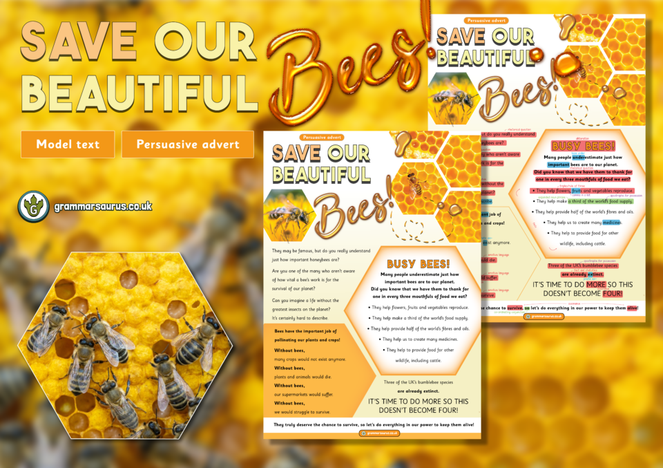 This model text is a persuasive advert trying to encourage people to save bees. It has been written to meet