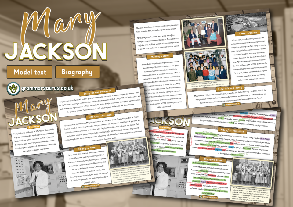 This model text is a biography of Mary Jackson. It has been written to meet the Year 5 expected standard
