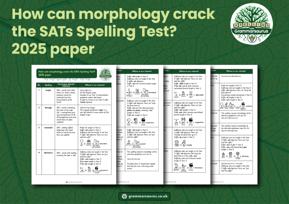 Spelling with Grammarsaurus – Literature Review: Morphology in SpellingSpelling with Grammarsaurus – Where does Spelling with Grammarsaurus meet National Curriculum objectives?Spelling with Grammarsaurus – Literature Review: Morphology in Spelling