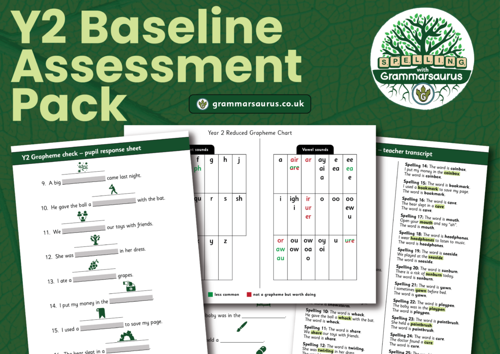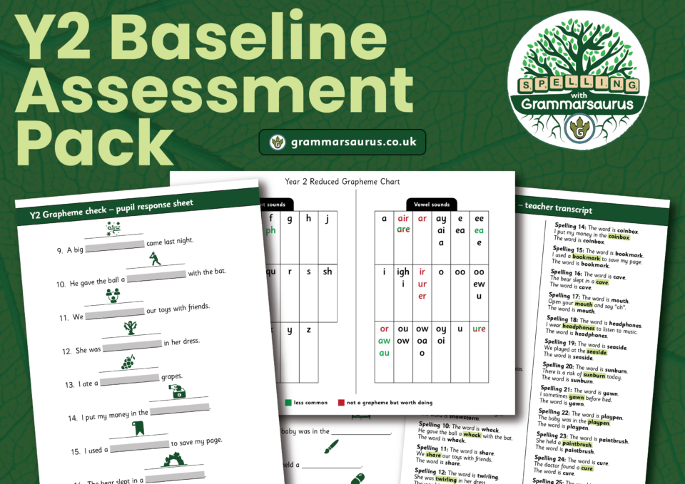 Year 2 Baseline Assessment Pack For Use with Spelling with Grammarsaurus This Year 2 Baseline Assessment Pack has been created
