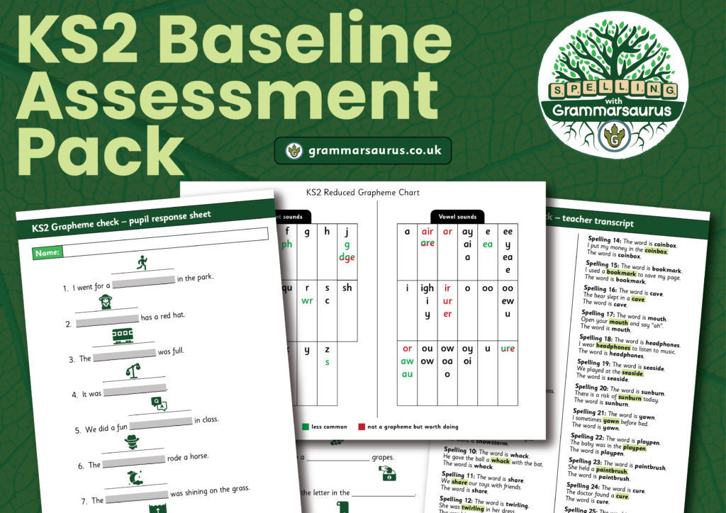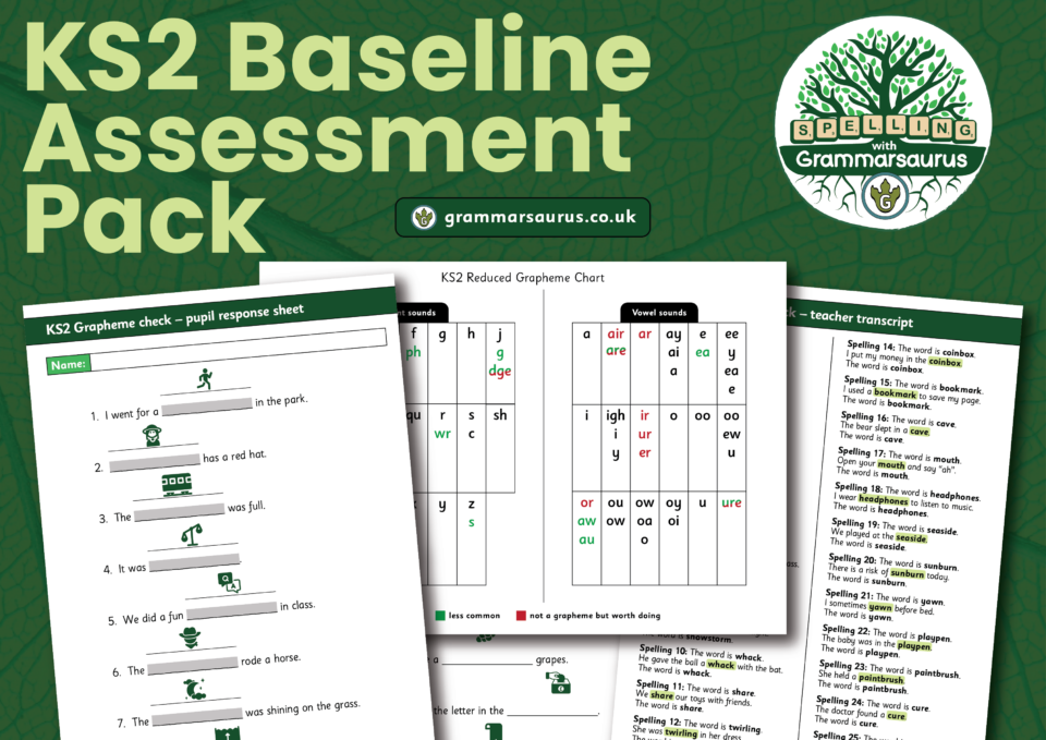 KS2 Baseline Assessment Pack For Use with Spelling with Grammarsaurus This KS2 Baseline Assessment Pack has been created to support