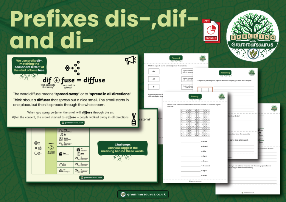 In this objective, children will learn how to add the prefix dis- and its assimilated forms dif- and di- to bases and stems to form new