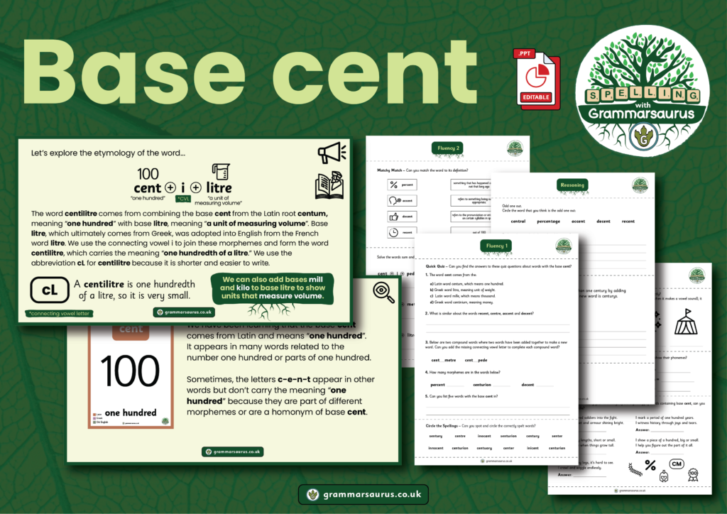 In this objective, children will learn how to add the base cent to other morphemes to make new words. Over