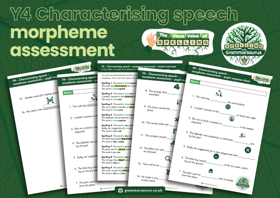 Spelling with Grammarsaurus Baseline Assessments, Morphology Flashcards & General Guidance