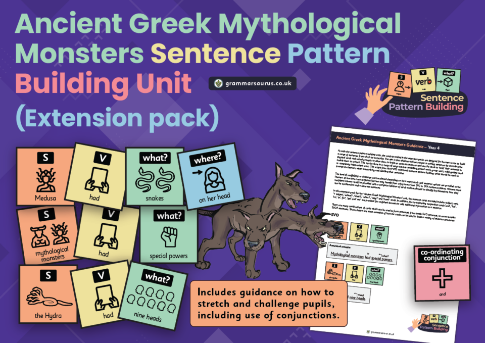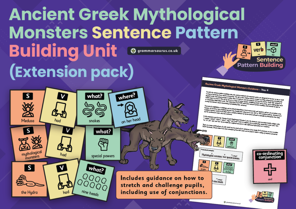 This Sentence Pattern Building Unit Extension Pack is based on the book ‘Leo and the Gorgon’s Curse’ by Joe Todd-Stanton.