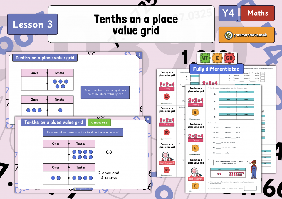 Year 4 Decimals – Tenths on a place value chart – Lesson 3