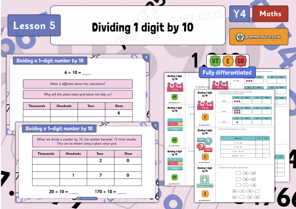 Year 4 Decimals – Dividing a 1-digit number by 10 – Lesson 5