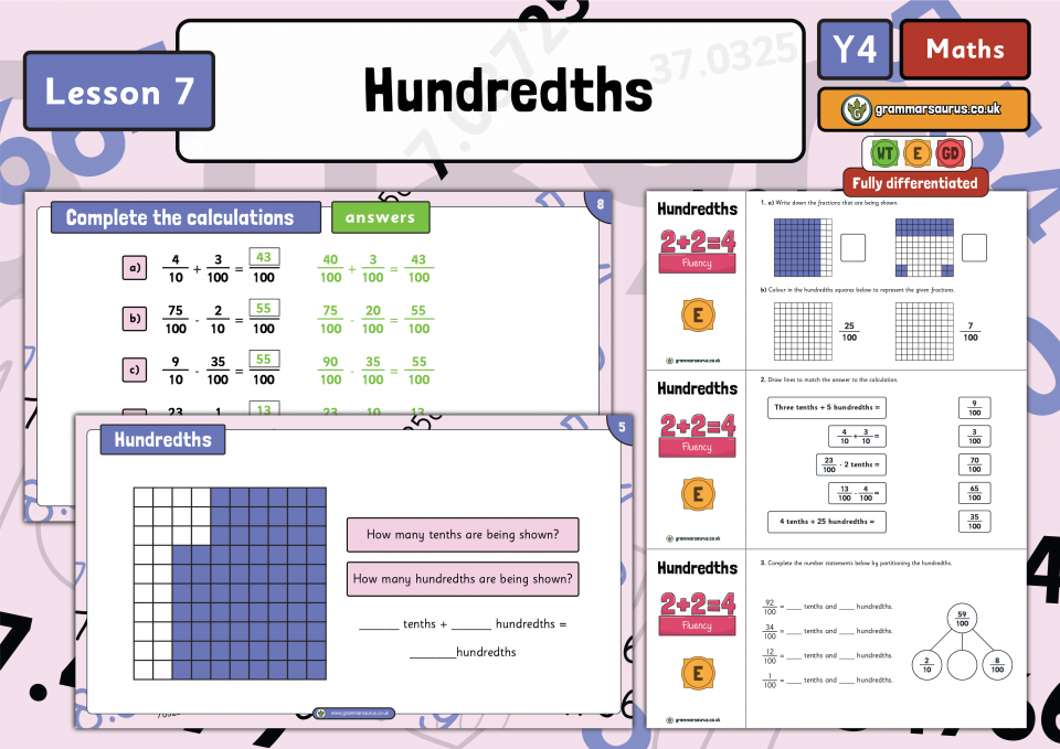 Year 4 Decimals – Hundredths as fractions – Lesson 7