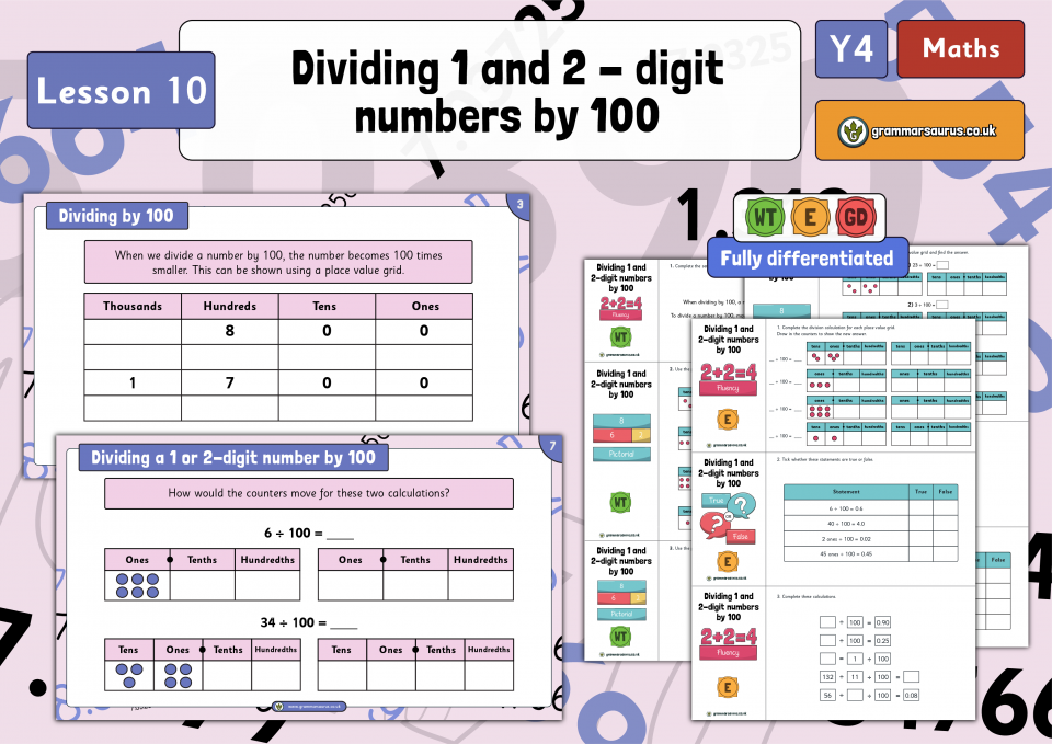 Year 4 Decimals – Divide a 1- or 2-digit number by 100 – Lesson 10