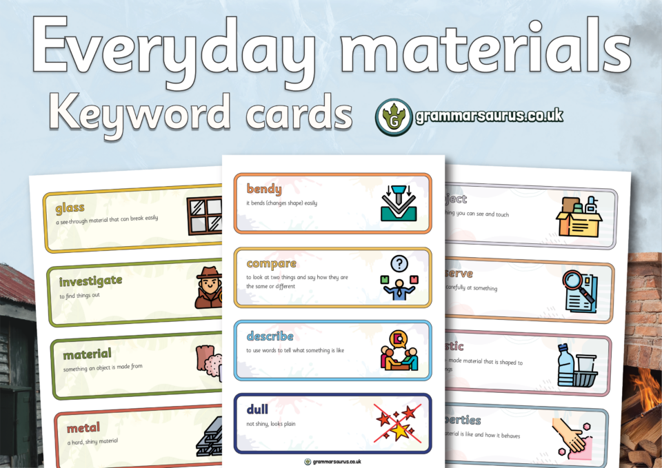 This display pack accompanies the Year 1 Everyday Materials unit... Hello, Downloads are for members of Grammarsaurus only. Please sign