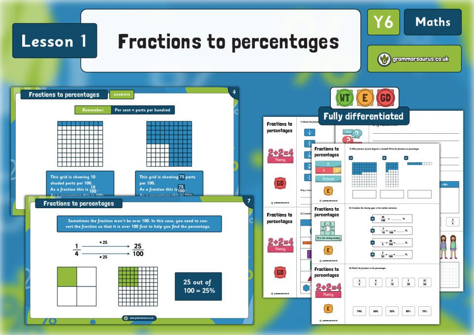Year 6 Fractions, Decimals and Percentages – Fractions to percentages – Lesson 4