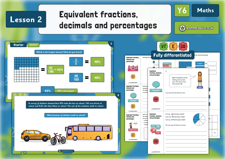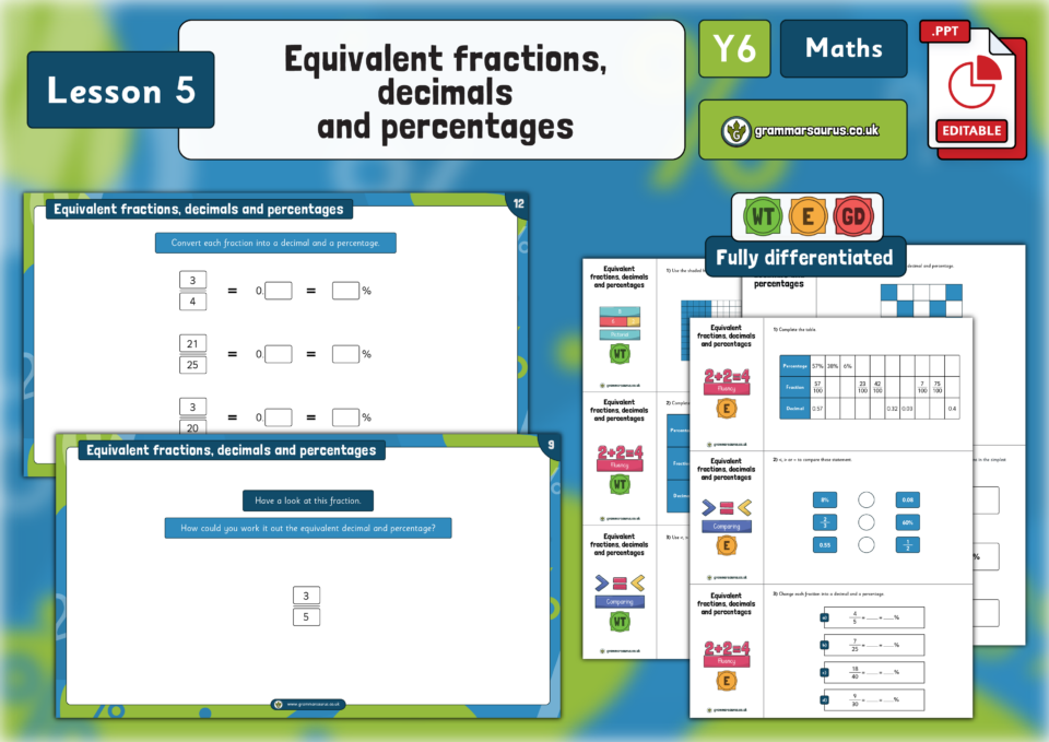 Year 6 Fractions, Decimals and Percentages – Equivalent fractions, decimals and percentages – Lesson 5