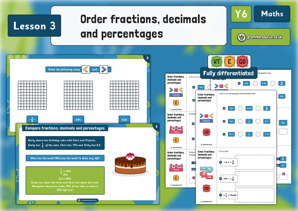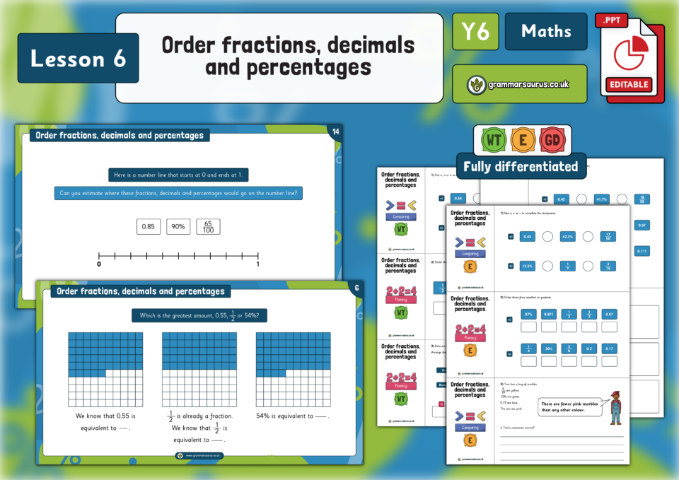 Year 6 Fractions, Decimals and Percentages – Order fractions, decimals and percentages- Lesson 6