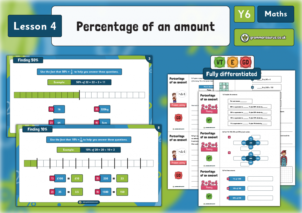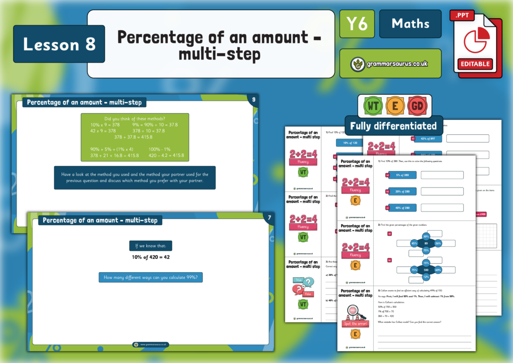 Lesson 8 Percentage of an amount – multi-stepIn this lesson, children will build on their knowledge of finding 1%, 10%,