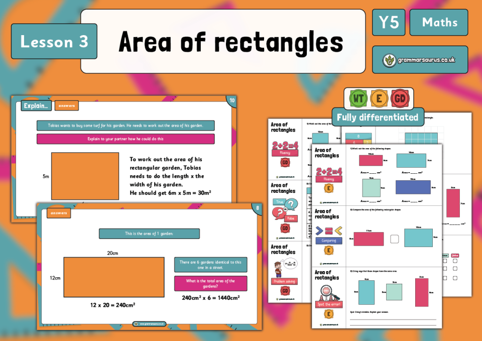 Year 5 Perimeter and Area – Area of rectangles – Lesson 4