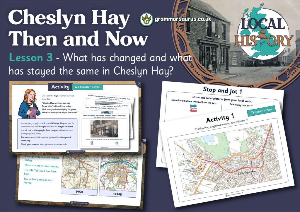 This editable lesson pack focuses on what has changed and what has stayed the same in Cheslyn Hay. The file