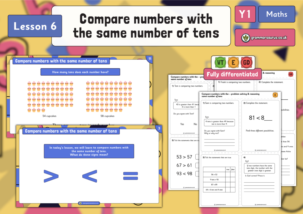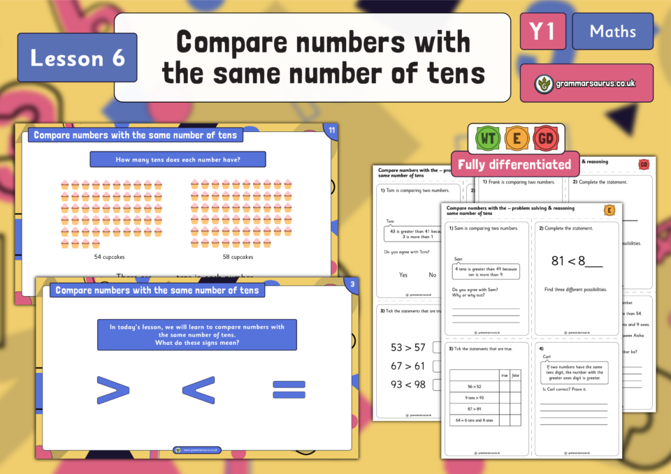 Year 1 Place Value (within 100) – Compare numbers with the same number of tens – Lesson 6