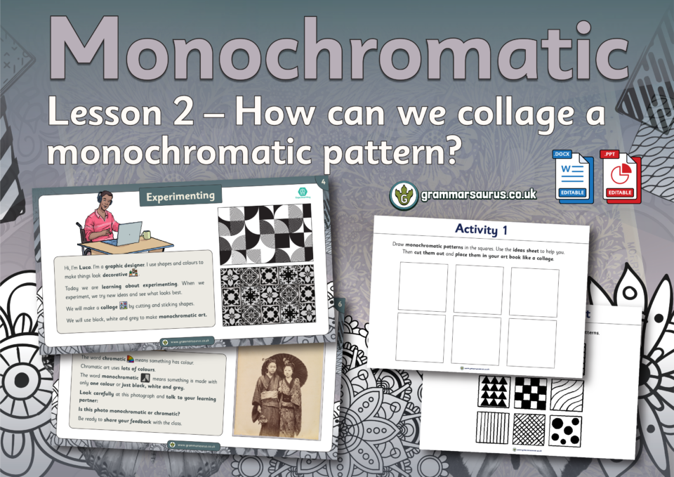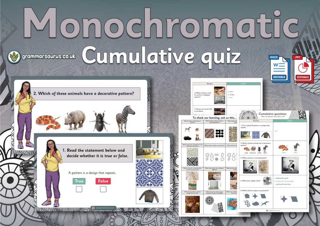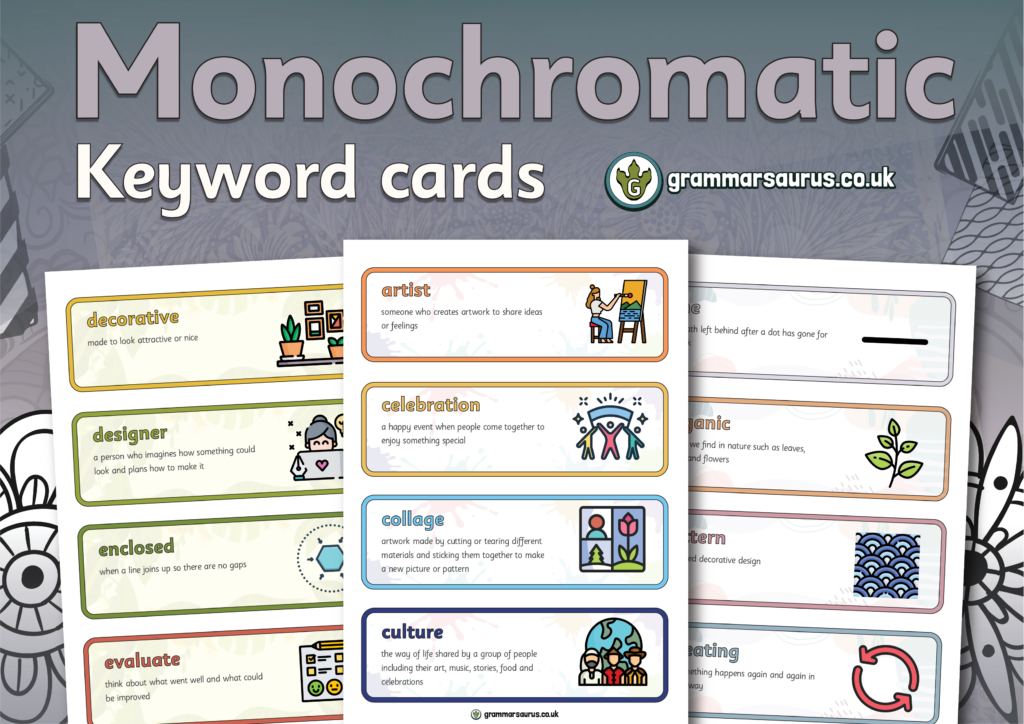 These display resources accompany our Year 2 'Monochromatic' unit lessons.... Hello, Downloads are for members of Grammarsaurus only. Please sign