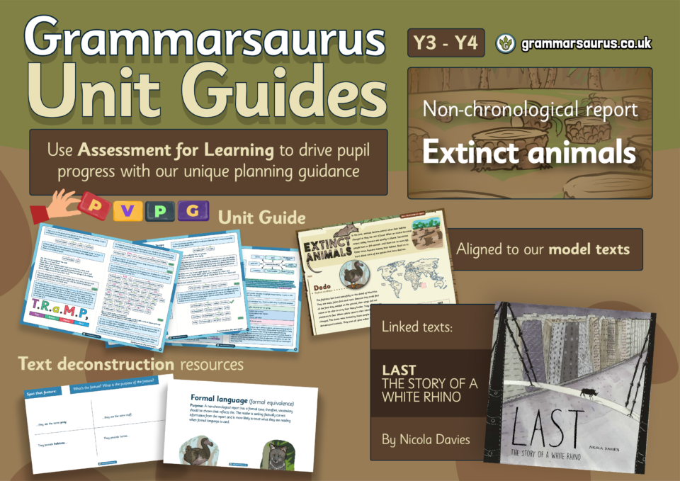 Grammarsaurus unit guides are designed to support teachers in creating a bespoke learning journey for their children. Each step of