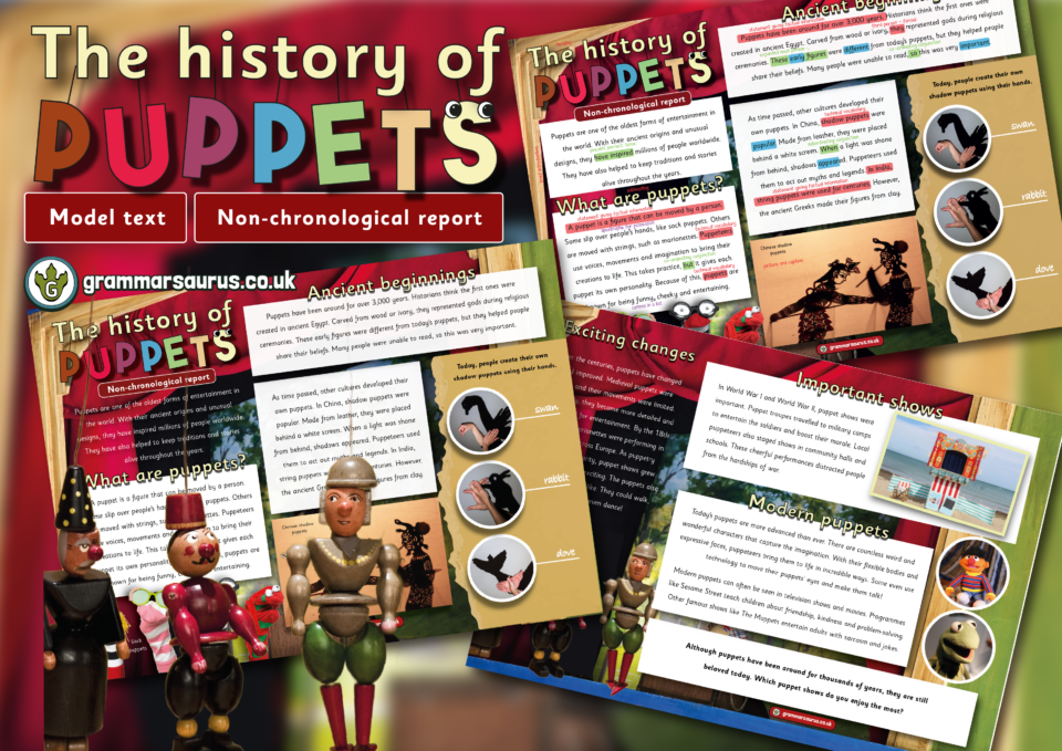 This model text is a non-chronological report about the history of puppets. It has been written to meet the Year