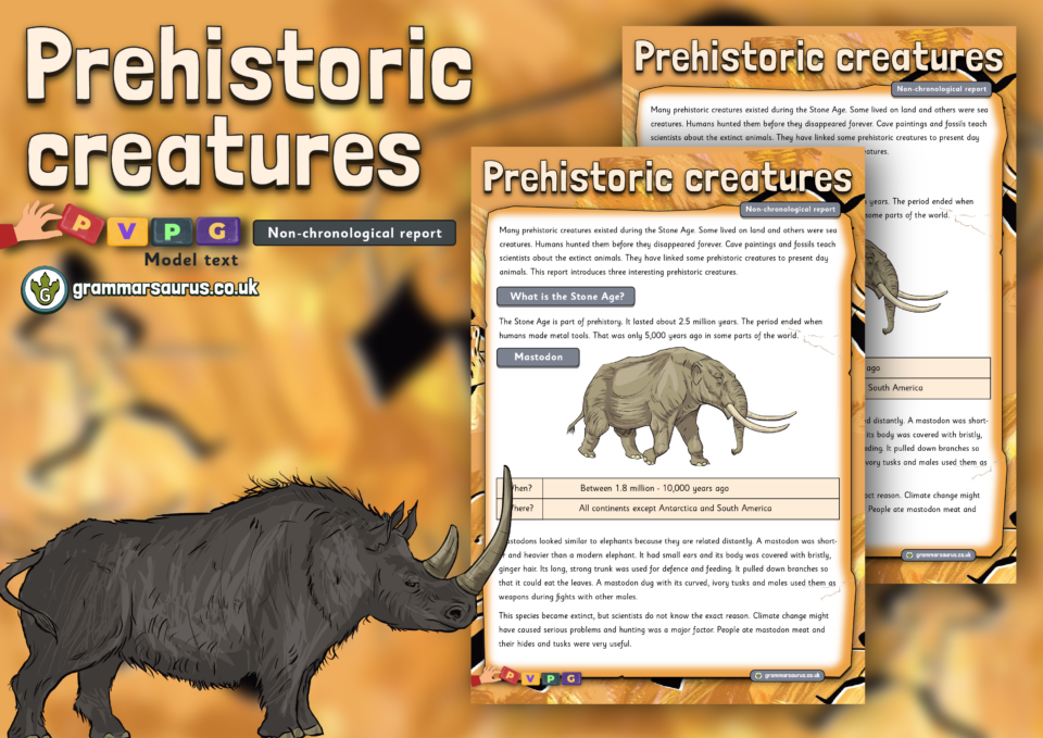 This model text is a non-chronological report about Prehistoric beasts. This is a simplified text written to complement our Y3