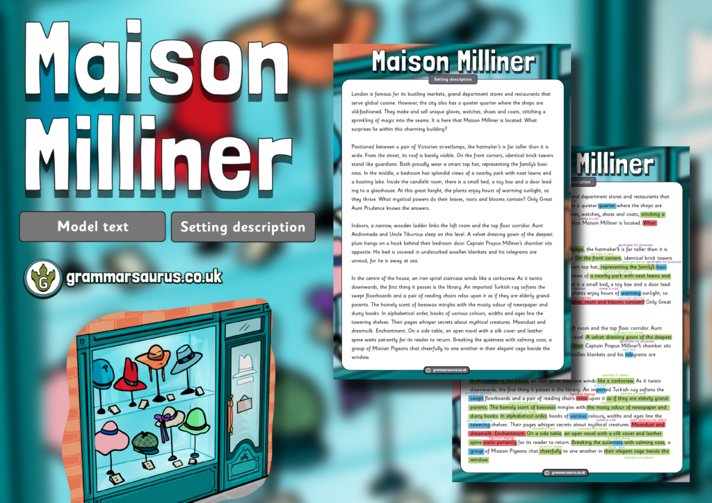 This model text is a setting description of a mysterious, enchanted shop. It has been written to meet the Year