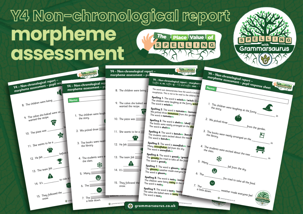 Use the Non chronological report - morpheme assessment to assess the suggested morphemes* needed to write a Non - chronological report.*suffix -s, -es, […]