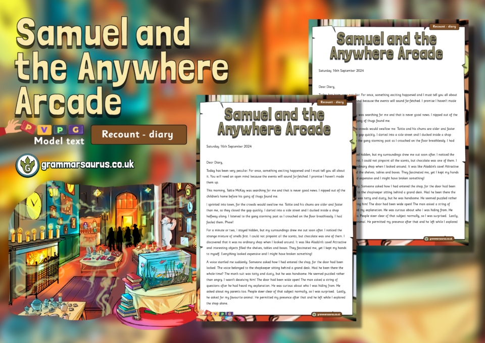Year 4 PVPG Model Text – Recount – diary – Samuel and the Anywhere Arcade