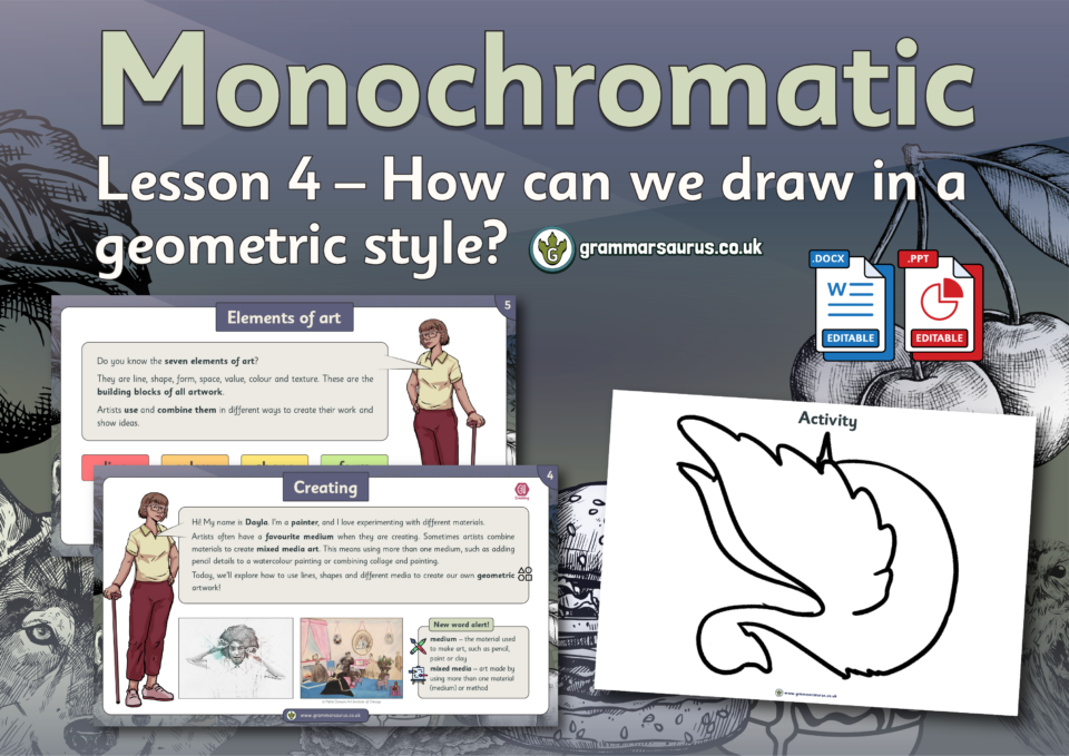 This editable knowledge organiser accompanies our Year 5 ‘Monochromatic’ unit lessons. The file includes the following resources: - editable knowledge