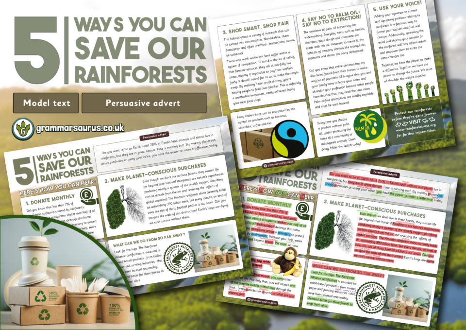 Year 5 Model Text – Persuasive advert – 5 ways you can save our rainforests