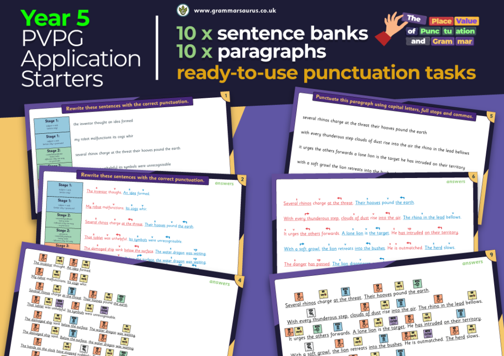 These ready-to-use tasks support pupils in revisiting the punctuation of single-clause sentences using the PVPG approach. This resource includes sentence