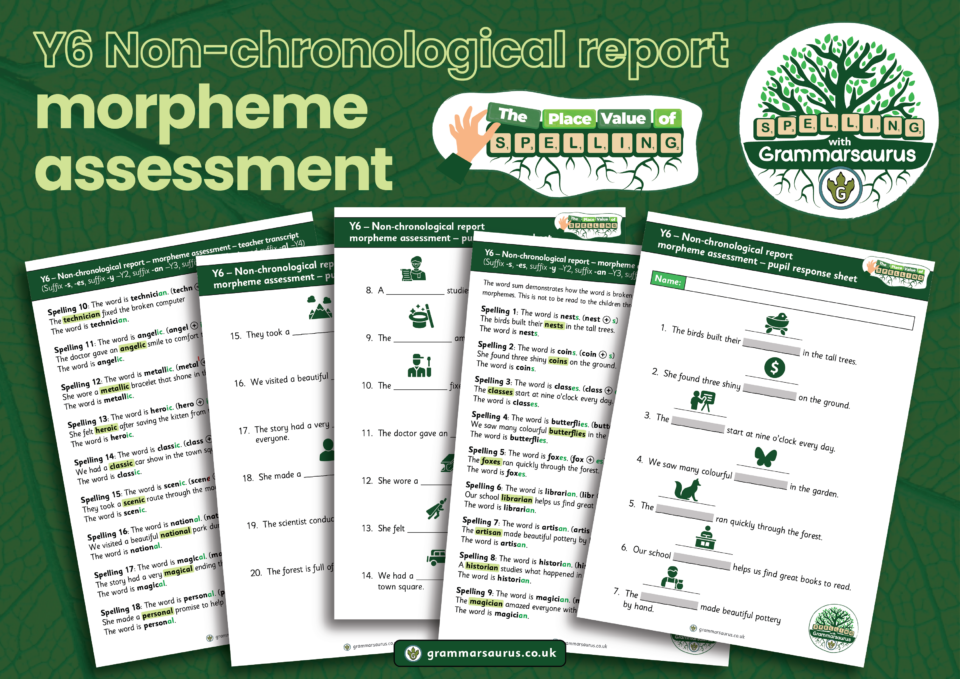 Use the Non chronological report - morpheme assessment to assess the suggested morphemes* needed to write a Non - chronological report.*suffix -s, -es, […]