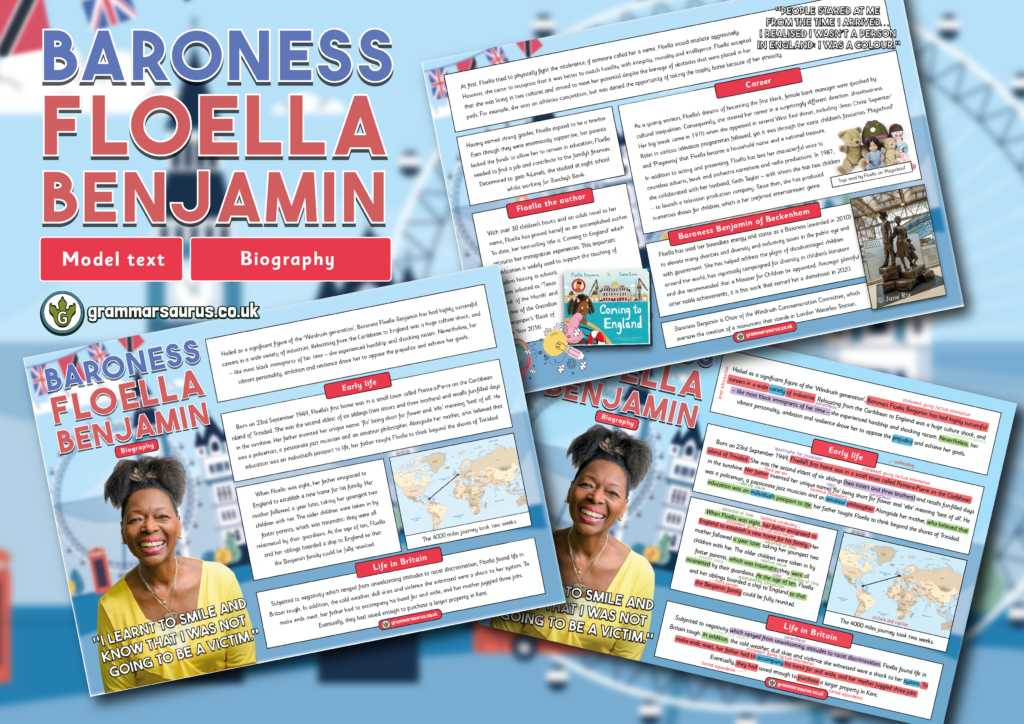 This model text is a biography about he life and work of Baroness Floella Benjamin, who travelled to England as