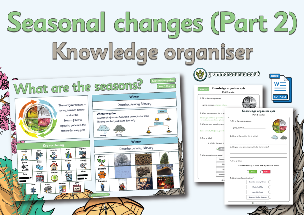 This resource is a Year 1 knowledge organiser on the topic Seasonal changes. It includes a knowledge organiser and mini