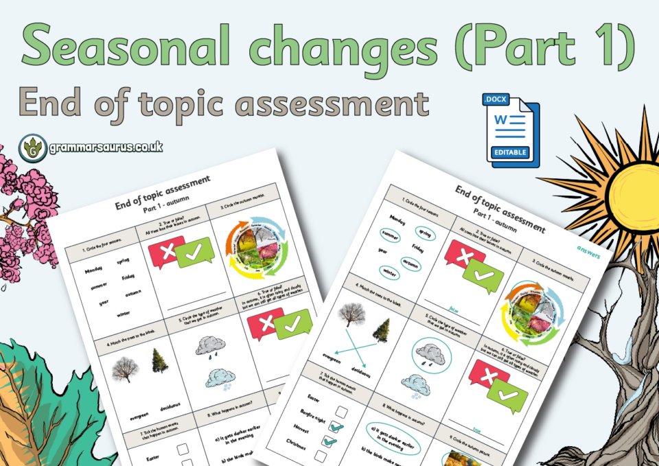 This assessment pack accompanies our Year 1 ‘Seasonal changes’ unit lessons. The file includes the following resources: –