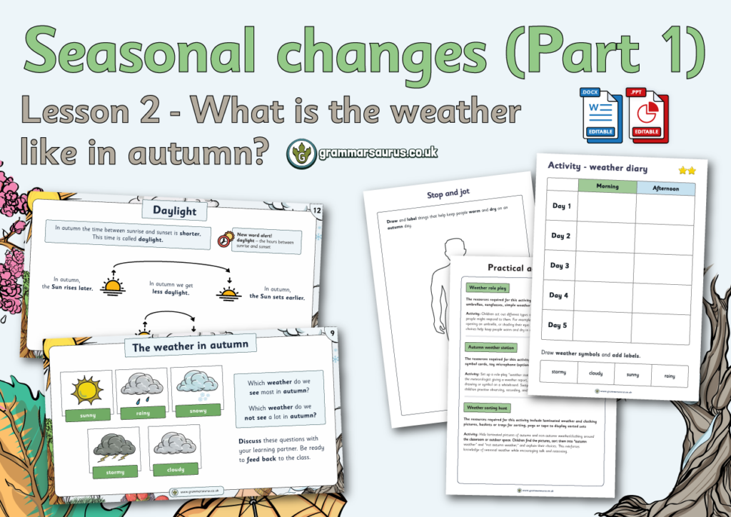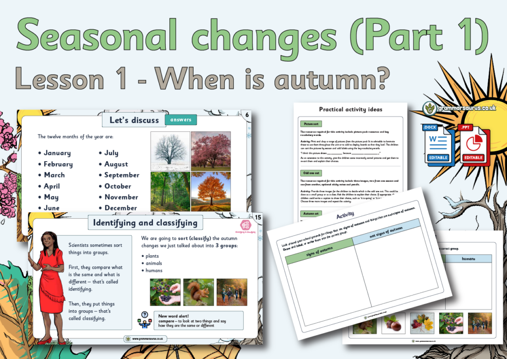 This editable lesson pack introduces the terms month, year and season, focusing on exploring the signs of autumn and developing