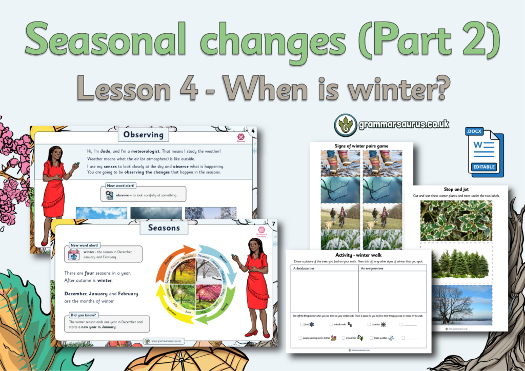 This editable lesson pack introduces the terms month, year and season, focusing on exploring the signs of winter and developing
