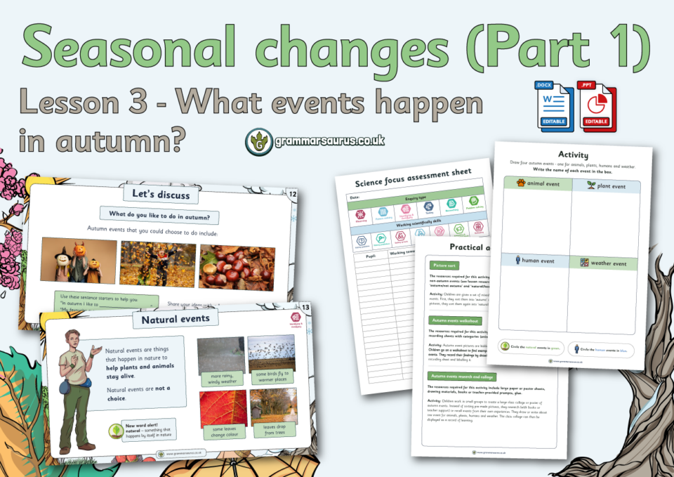 This editable lesson pack focuses on exploring familiar events that happen in autumn and developing the skills of observing and