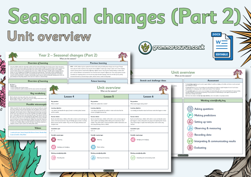 This editable unit overview provides an overview for PART 1 - lessons 1, 2 and 3 (autumn) for Year 1’s Seasonal