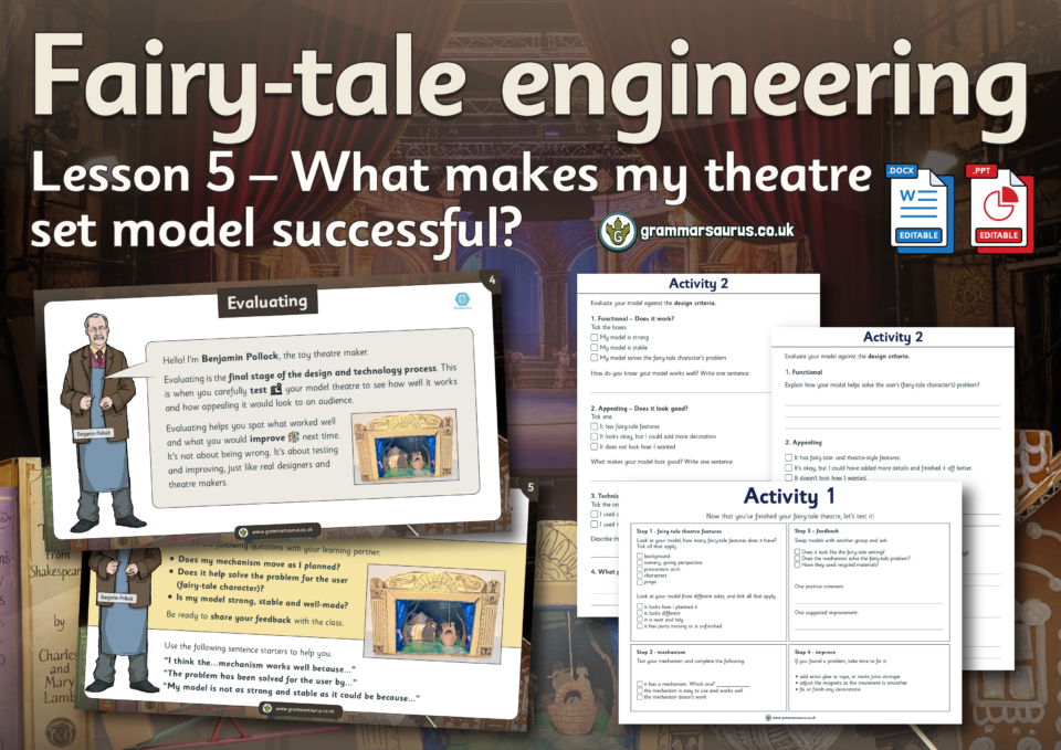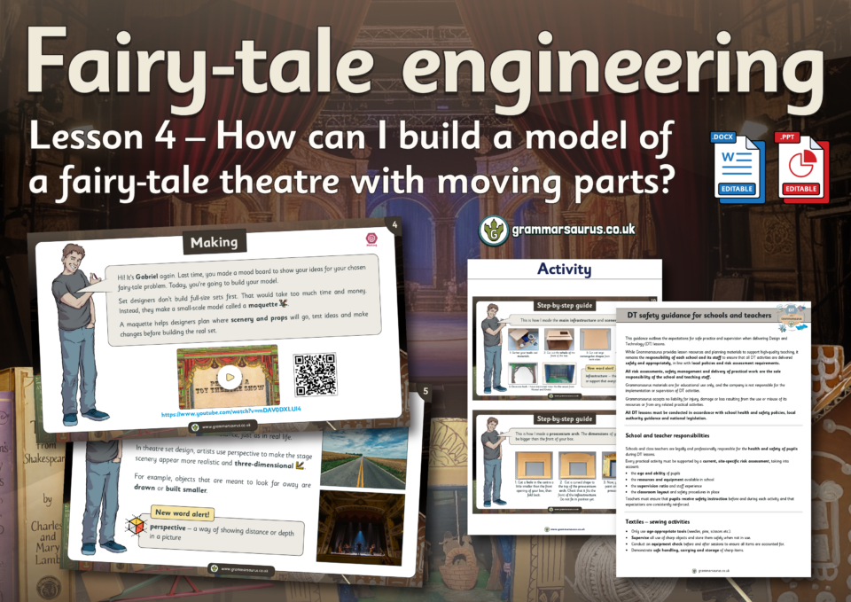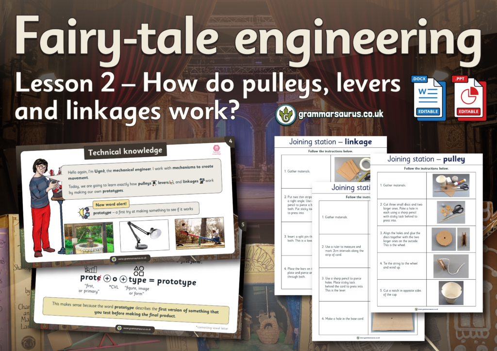 These display resources accompany our Year 5 'Fairy tale Engineering' unit lessons.... Hello, Downloads are for members of Grammarsaurus only.