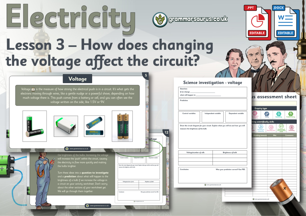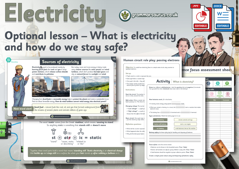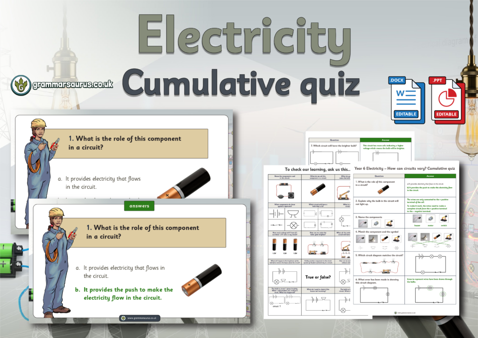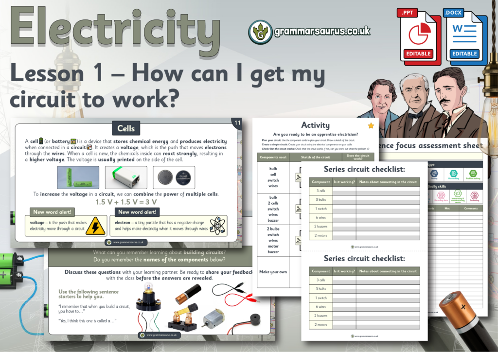 These display resources accompany our Year 6 Electricity unit lessons.... Hello, Downloads are for members of Grammarsaurus only. Please sign