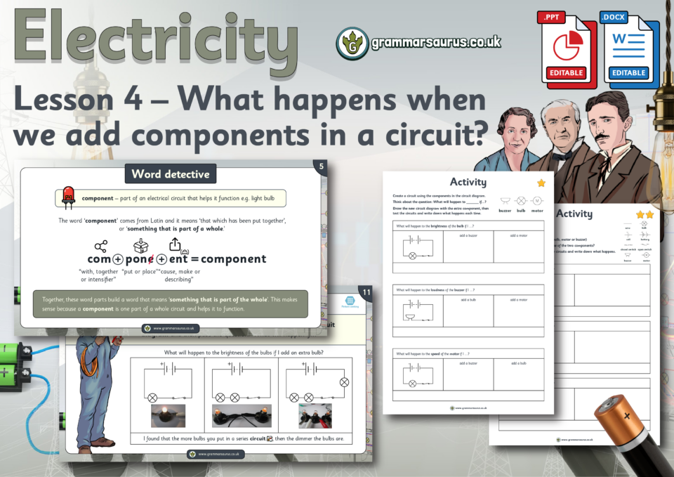 This editable differentiated lesson pack builds on children's understanding of electricity from year 4. They will learn how components work
